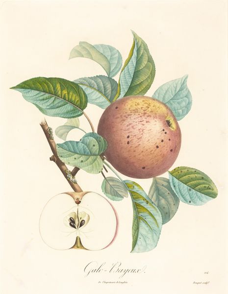 George Brookshaw created "Two Plums" using watercolor. The composition is structured around two nearly identical arrangements of plums, leaves, and stems, stacked vertically. One plum is a sun-kissed yellow; the other, a deep, mysterious purple. Brookshaw masterfully employs color to distinguish these fruits and to suggest texture. Notice how the stippling effect in the application of watercolor creates a visual roughness, giving the illusion of depth and dimension to the plums' surfaces. The leaves, rendered with delicate veins, add a layer of complexity to the simple composition. The symmetry and careful arrangement speak to the scientific illustration prevalent in Brookshaw's time. The seemingly straightforward depiction becomes a study in contrasts: light versus dark, smooth versus textured, and the natural versus the constructed. It invites us to look beyond the surface, to consider the underlying structures that give shape and meaning to our perceptions.
