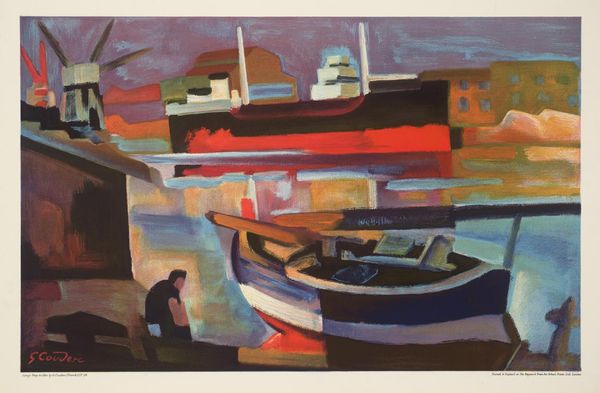 Curator: Let’s discuss this evocative oil painting entitled "Boats," created by Costas Niarchos. It appears to be a vibrant depiction of a cityscape with numerous boats in the foreground. Editor: Immediately, I am struck by the painting's texture; the impasto technique gives it such a tangible, almost sculptural quality. And the color palette feels distinctly Mediterranean—blues and whites dominating, which perhaps gestures at leisure, tourism, maybe even commerce. Curator: Indeed. From a historical viewpoint, depictions of harbors have often been linked to economic prosperity and maritime power. The accumulation of boats here possibly indicates an industrious or commercially successful port city. It seems fitting given Niarchos' Greek background, since boat ownership and island tourism has had a deep-seated connection to their economy and national identity for some time. Editor: Absolutely, and to extend that thought, one can almost perceive a social hierarchy embedded within the representation of these vessels. Who owns them? Who profits from their presence? It really causes us to investigate maritime commerce beyond pretty colours. The labour connected to them, the lives entwined with this seascape, it begs for more nuance in its aesthetic enjoyment. Curator: I think your approach is critical to understanding Niarchos's imagery. Consider the absence of human figures, for instance. Is it an intentional comment on alienation within these tourist economies? Is it the art reflecting or constructing our relationship to capital? Or it is simply the artists perspective being offered? It’s a conversation definitely worth exploring. Editor: And it raises the issue of artistic intent. I am curious to see the reception of his broader oeuvre within Greek society and to what degree his images can be seen to support/critique it’s culture or it’s reliance upon industry, or to perhaps find more about who may commission paintings with similar motifs. Curator: So, as we conclude, what do we take away from this snapshot of boats and buildings by the sea? Editor: Ultimately, the picture resonates with possibilities: economic vitality or disparity? I have a sense there’s deeper dialogue needed.