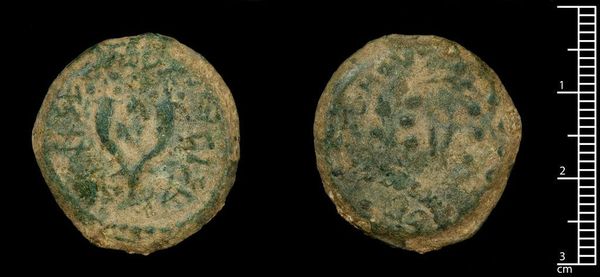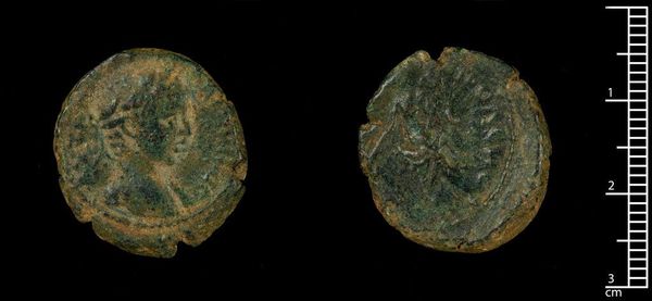 Editor: This is a coin from Aelia Capitolina, potentially made under Commodus. The patina gives it such a tactile sense of history. What kind of stories do you think it carries? Curator: Indeed! The coin whispers of Aelia Capitolina, a Roman colony built on Jerusalem’s ruins. Don't you find that the image, though worn, evokes the weight of cultural shifts, the layering of Roman power over older narratives? Editor: Absolutely. It's like a material memory. I wonder what symbols were intentionally chosen for its design. Curator: Think of the images it would have held – emperors, gods, architectural marvels. Each a deliberate signifier, speaking to Roman identity, power, and ambition. Editor: It’s fascinating to consider how those symbols would have been received by a diverse population. Thanks, I hadn't thought about it that way. Curator: And I'm reminded how a single coin can hold so much meaning.