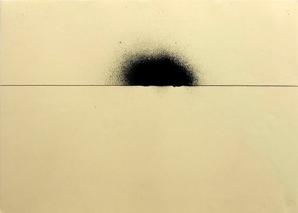 Curator: Fiona Banner's print, "Swarm," presents a concentrated mass of black ink against a stark white background. It's part of the Tate collection, offering an interesting, somewhat ambiguous visual. Editor: My first thought is of a void, or perhaps a gathering storm cloud. There's a certain tension created by the density of the black against that negative space. Curator: Indeed. Banner often explores the overwhelming nature of information. In this context, I think the swarm evokes themes of collective action, or perhaps even the darker side of group mentality. Editor: Absolutely. I'm struck by how a simple shape can conjure up such complex ideas related to power, control, and the erasure of individuality within a larger entity. Curator: It leaves you contemplating the nature of collective identity. Editor: Precisely. There's a real power in such concentrated simplicity.