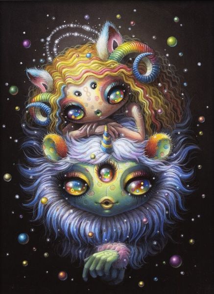 Yoko d'Holbachie created “Darkness and Brightness,” an oil painting that embraces the themes of fantasy, femininity and surrealism. At first glance, the painting draws you in with its striking contrast between the darkness of the background and the brightly colored, otherworldly figure at the center. D'Holbachie creates a space that is both whimsical and haunting. Her female figures often embody a blend of innocence and knowing, reflecting the complexities of female identity. The large eyes are particularly emotive. They remind us how powerful it is to be seen, and how vulnerable it is to be looked at. This pushes you to consider the representation of women in art, and whether the artist perpetuates traditional narratives or develops alternative narratives. D'Holbachie’s work, in its dreamlike quality, ultimately seems to reflect the multifaceted nature of the self, of identity, and the interplay between the seen and unseen.