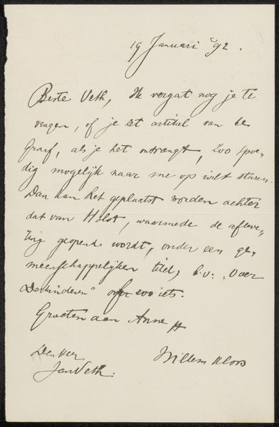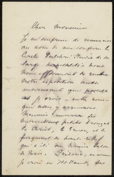 Editor: Here we have "Brief aan Jan Veth," a pen and ink drawing, potentially from 1898, by Max Liebermann, housed at the Rijksmuseum. It's fascinating – the whole piece is handwritten German text, with some words underlined! What do you see in this work? Curator: What I see is an intersection of art, craft, and social exchange. It's not just a letter; it’s a material object infused with the personalities of Liebermann and Veth, who was himself an artist and critic. Let's consider the date, likely 1898 – German Expressionism was bubbling, a movement partly fueled by anxieties about industrialization and alienation. How does this hand-rendered letter challenge ideas about mass production and standardization? Editor: I guess it emphasizes the personal connection between the sender and receiver, pushing against the impersonal nature of, say, printed text. The very act of handwriting makes it intimate. Curator: Exactly. It’s an act of resistance, almost. Think about the labor involved, the deliberate formation of each character. In what ways does Liebermann assert his individuality and artistic sensibility within the conventions of letter writing? Is it simply functional, or is it making a statement? Editor: I think it blurs that line, because you can admire the craft, the penmanship. The form becomes inseparable from the content. It seems very intentional that this ordinary means of communication becomes elevated, an expressive object. Curator: Yes, we shouldn’t disregard its place in a conversation between two artists in a complex socio-political moment. How might it be different than a quick, utilitarian email? The contrast reveals what’s really significant about artistic exchange and, beyond that, personal correspondence in a rapidly changing world. What have you discovered through our talk? Editor: How handwriting elevates it beyond pure communication. The message is secondary; the artistry is foremost. Curator: I'm also struck by the power of personal connection within an historical setting; the very artifact testifies to it.