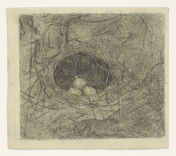 Curator: Here we have a drawing by Paul Huet, created in 1834, titled "Titelprent met lezende man met hond in een bos," or "Title page with a reading man and dog in a forest". It's rendered in pencil. Editor: The overall impression is one of quiet intimacy. A secluded moment amidst dense foliage, almost a little vignette hidden from the world. Curator: Huet was, of course, a significant figure in the Romantic movement, and we can certainly see echoes of that here. The solitary figure, seemingly lost in thought and immersed in nature, speaks to that Romantic ideal of finding solace and understanding outside the confines of society. Considering his connections to other artists, it speaks to broader issues of that generation's rejection of the previous eras constraints. Editor: The materials themselves are crucial here. The softness of the pencil work allows for incredibly detailed textures – look at the layers of leaves, the varied grasses. It all feels very immediate, very directly connected to the act of observing and recording the natural world. It also emphasizes accessibility, pencil and paper are readily available, making art possible without expensive mediums. Curator: It is worth discussing this particular representation of masculinity within the artistic landscape of the 19th century. This wasn't about overt power, but rather internal reflection, sensitivity, and intellectual curiosity which challenge the prevailing, more dominant ideas about men during this time. Editor: Precisely. And I'm drawn to the potential symbolic implications of the dog. Loyalty, companionship, perhaps even a reflection of the man's own inner state? Is this domestic labor depicted with the work involved in living with animal companions being illustrated, or something deeper regarding society in general. Curator: Indeed, considering Romanticism’s obsession with the individual in dialogue with the world around them. I find myself also contemplating themes like alienation and identity here. Perhaps even the idea of seeking sanctuary from political realities? Editor: Absolutely, this work’s existence challenges the ideas around high art. What this means for how labor and art were understood can't be disregarded Curator: The work operates on multiple levels then: a beautifully rendered study of nature, and also a powerful reflection on human emotion and intellectual pursuit. Editor: Yes, a testament to how even the simplest materials can create a profound sense of place and evoke deep contemplation about ourselves.