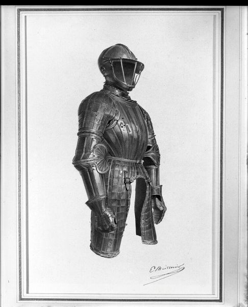 Editor: This is a Jousting Armor created between 1555 and 1605, made by Anton Peffenhauser. It's currently housed in the Metropolitan Museum of Art. The stark frontality of the display gives it a rather intimidating presence. How do you interpret this work? Curator: Intimidating is a key word, isn't it? This armor, beautiful as it is, speaks volumes about the power structures of its time. Jousting was far more than a sport; it was a ritual performance of aristocratic masculinity and dominance. Think about the resources required to create and maintain such a suit. Editor: Absolutely. It must have taken immense skill to forge something like that, too. Curator: Precisely. And who benefited from that skill? This armor isn't just protection; it's a symbol of privilege. It represents the martial prowess that reinforced social hierarchies, with the landed gentry monopolizing violence and solidifying their control. It reflects very limited access and agency. The geometric forms also deserve careful thought. Editor: The circles and sharp angles really stand out. Was that purely for aesthetic reasons, or did the shape itself play a role? Curator: Both, I would argue. Aesthetics are never neutral. The sharp lines, the overall imposing form – they are meant to project an image of strength, invincibility. These are not just practical choices; they are visual cues that underscore the wearer's status and power. Consider, too, that this image contrasts vividly with how conflicts are pursued today, shifting who controls and yields military power. Editor: That’s fascinating. So, seeing it this way invites us to consider the history of social inequality and how objects can reflect that? Curator: Exactly! This isn't just a suit of armor; it's a frozen moment in a historical narrative of class, gender, and power. Recognizing that helps us engage with art history in a more meaningful way. Editor: That's a perspective I hadn’t considered before. It definitely makes me see it in a new light.