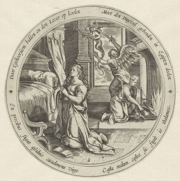 Lucas van Leyden created this engraving, "Ecce Homo," as part of his "Circular Passion" series. The composition immediately draws the eye to the contrast between the circular frame and the stark, angular architecture within. Van Leyden masterfully uses line to create depth and texture. Notice how the dense cross-hatching in the foreground gives way to lighter, more delicate lines in the cityscape, suggesting distance. The artist creates a semiotic system that uses the image’s architectural elements to convey meaning and spatial relationships. The circular format destabilizes the traditional rectangular composition, pushing the viewer to engage with the narrative in a more intimate way. The circular frame creates a sense of continuity, a visual echo of the cyclical nature of religious stories, and invites ongoing interpretation of its themes and values.