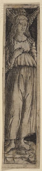 Francesco Francia etched this delicate image of 'Hope' around the turn of the 16th century. We see a figure, eyes downcast, hands clasped in quiet anticipation, a scroll unfurling above her head bearing her name. This Hope is not merely a virtue, but a posture, a way of being in the world. We see echoes of this figure in ancient depictions of Spes, the Roman goddess of hope, often shown holding flowers, emblems of growth and renewal. Yet, in Francia's rendering, there's a poignant stillness. The downcast eyes, the folded hands, suggest a deeper, more internalized emotion. Across centuries, this gesture of clasped hands resurfaces in various guises—in devotional images of Mary, in portraits of pious donors. It speaks to a collective memory, a shared understanding of hope as both a solace and a burden. This symbol reminds us that hope is a powerful force, constantly evolving, yet eternally rooted in the human psyche.