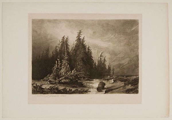Alexandre Calame etched "Mountain Pines" to capture the sublime essence of nature. Dominating the image, the windswept trees stand as resilient figures against the elements. They are a testament to nature's enduring power. Consider how the motif of the tree appears across cultures. In ancient Greece, trees were sacred to gods, symbols of life and knowledge. In Norse mythology, Yggdrasil connected the heavens, earth, and underworld. Here, the gnarled pines evoke a sense of struggle. The way the pines are tossed by the wind carries intense emotional weight. There is an emotional connection, a dialogue between nature's imposing force and our own human vulnerability. This reminds me of Romanticism’s preoccupation with the awe-inspiring and often terrifying aspects of the natural world. The image taps into a collective memory of nature as both a source of solace and a site of formidable power.