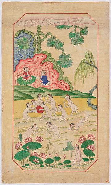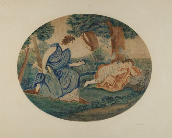 Lazar Rubinstein's "Bandbox Sections" presents us with a pastoral scene, evoking the leisurely pursuits of a bygone era, perhaps painted to decorate a container for personal keepsakes. Here, the prominent symbol is the hunt, represented by the figures, dogs, and horse, all recurring motifs throughout art history. The hunt is an allegory for pursuit, desire, and dominance, but also for the atavistic pleasure found in the conquest. Consider the classical Diana, goddess of the hunt, or the many tapestries depicting noblemen engaged in the chase. These are not merely images of sport, but powerful statements about societal structure. Now, observe the gathering of figures under the trees. This harkens back to Arcadian ideals, a longing for a simpler, more harmonious existence. The scene taps into a collective memory of a time when humans were more closely connected to nature. This longing, often subconscious, finds expression in art across centuries.