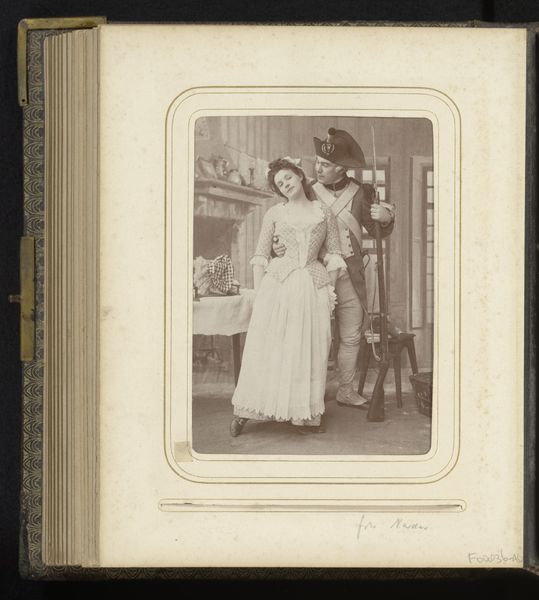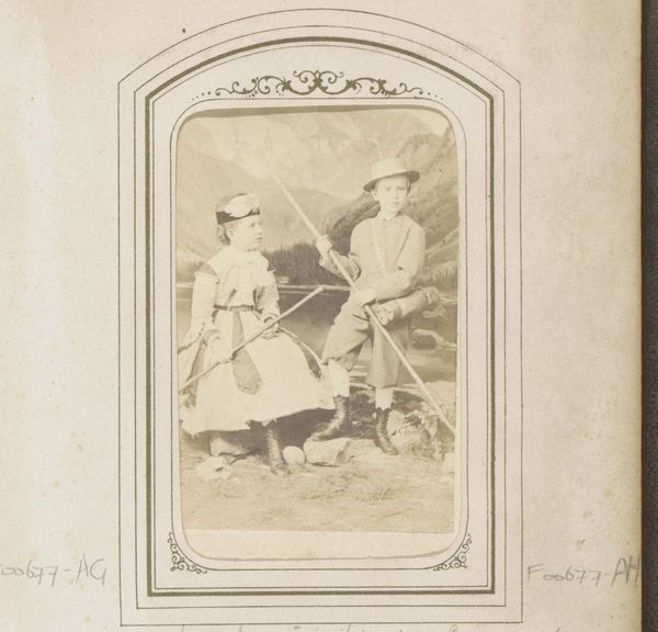 This photographic portrait of two girls and a boy in traditional dress was made by C.V. Roikjer, and it's interesting to think about how they approached the making of the picture. Looking closely, I notice how the figures are arranged, almost posed, against a backdrop that seems both real and staged. The way the light falls feels very deliberate. This is like painting, isn’t it, deciding how to frame something? How to pose your subject? You know, where to put the fence. The nuances of tone capture the textures of the clothing and the landscape. There's a softness to the image that reminds me of early photography. It’s like the image is trying to capture a fleeting moment, an instant of time, but also something timeless about tradition. It makes me think of other artists who worked with photography to capture people in their traditional clothes, like August Sander. But while Sander was more interested in capturing archetypes, this feels more personal, like a family photo. It’s that tension between the universal and the particular that makes art so interesting, right?