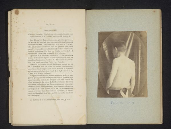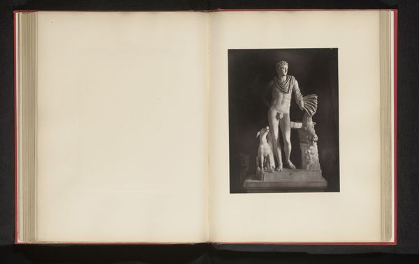 Curator: Let's turn our attention to this striking photograph from before 1899. It’s titled "Portret van een onbekende halfnaakte man," or "Portrait of an unknown half-naked man" by P. Lecyloë. Editor: My first impression? Well, the stark black and white creates a strangely vulnerable mood. He’s trying to strike a classical pose, all laurel leaves and confident stance, but that unknown face throws me. Is it defiance or awkwardness? Curator: Precisely. The artist leverages visual cues strongly rooted in the classical-realist tradition; we have the pose echoing antique statues. But instead of marble, we have the photographic print. A juxtaposition suggesting both power and intimacy. Notice how the genre style lends itself to interpreting cultural narratives from this period. Editor: Absolutely, and it messes with expectations. Nudity was so idealized then – a celebration of the perfect human form. But this... feels less like a god, more like someone pretending to be one. Perhaps that bow hints at something psychological – a personal affectation frozen for posterity? Curator: It speaks, I think, to the aspirations of the rising middle class. This attempt to claim symbolic authority via art. He postures but perhaps reveals, despite himself, an underlying anxiety of belonging. Editor: I keep thinking about who this guy really was, not who he's trying to be. That little hint of uncertainty really shifts the iconic image of heroic masculinity. You nailed it earlier – the tension of this ambition is very affecting, very human. Curator: In the end, this photographic print, intended perhaps as homage, now functions as an intimate, revealing psychological portrait. Editor: Makes you wonder about all the unfulfilled portraits out there, the untold stories. Alright, where to next?