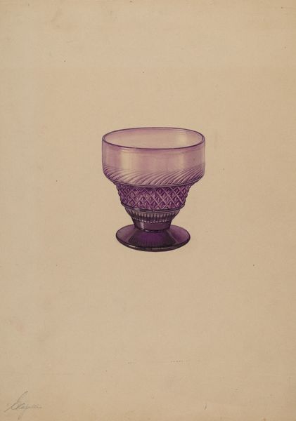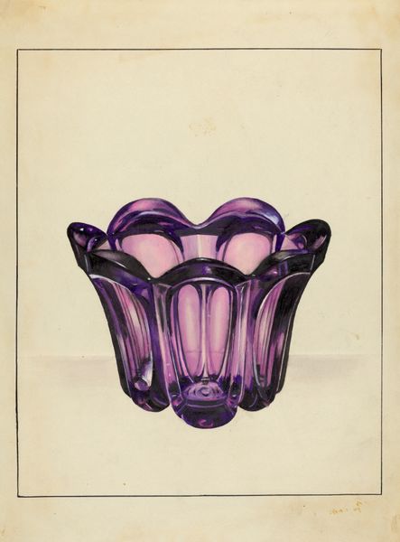 Here we see John Tarantino's watercolour of a 'Bowl', a piece whose creation was likely informed by the shifting cultural landscape of the 20th century. Tarantino, born in 1855, lived through a period marked by significant industrial and artistic revolutions. This era saw the Arts and Crafts movement pushing back against mass production, advocating for handcrafted, unique objects. The bowl, with its delicate form and translucent quality, speaks to a desire for beauty and refinement. The choice of rendering it in watercolor is particularly interesting, as it emphasizes the ephemeral nature of light and color. Does this bowl, rendered in soft purples, represent an escape from the stark realities of industrialization, a yearning for a simpler time? The bowl almost seems to glow, holding space for us to consider our own relationship with beauty and craftsmanship. What feelings does it evoke in you?