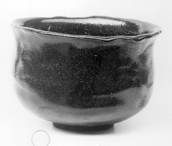 This black glazed stoneware wine bottle was made by Masamoto Naosaku. The bulbous form, narrowing at the neck, speaks to the importance of both utility and aesthetics in Japanese ceramic traditions. While the exact date of creation is unknown, the emphasis on simple, elegant design suggests the influence of the Mingei movement, which flourished in Japan during the early to mid-20th century. Mingei promoted the value of ordinary, handcrafted objects made by anonymous craftspeople. This bottle, with its dark, lustrous glaze, embodies the Mingei philosophy of finding beauty in the everyday. Studying the history of Japanese ceramics, alongside social movements like Mingei, helps us appreciate how artistic values are always tied to broader cultural attitudes about labor, class, and the role of art in society.