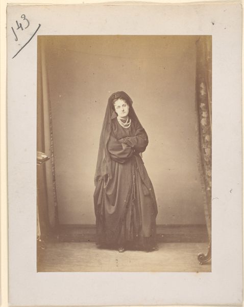 This photograph, "Sèriè à la Ristori," was made by Pierre-Louis Pierson using the albumen print process, a popular photographic technique of the time. The albumen in the paper gave the print its characteristic gloss and sepia tone. The process involved coating paper with a solution of egg white and then sensitizing it with silver nitrate. The negative was then placed on the prepared paper and exposed to light, creating a latent image. The print was then developed, fixed, and washed. The tonality, texture, and detail achieved through this method were highly valued, allowing for a certain control over the final image. The photograph becomes a manufactured object, subject to the variables of the method. The labor-intensive nature of the albumen print process reflects the value placed on skilled craftsmanship. It's a reminder of the artistry involved in early photography, before it was fully industrialized. So next time you snap a photo on your phone, remember all that was required to make an image like this!