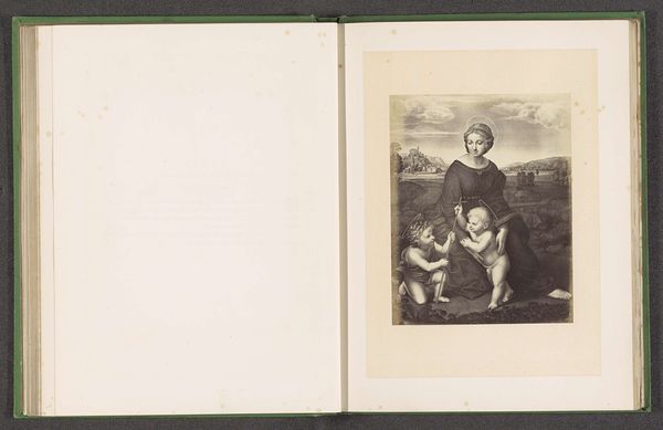 This is a photographic reproduction by Joseph Cundall, made after a print, likely by Achille Louis Martinet, of Raphael’s “Madonna del Silenzio”. Photography in the 19th century wasn't just about capturing reality. It was also a powerful tool for mass communication and reproduction. This image, for example, takes a famous Renaissance painting and makes it available to a wider audience through the then-new medium of photography. Consider the process: a photograph of a print, itself made after a painting. Each stage involves a skilled artisan, from the engraver translating paint to line, to the photographer capturing light and shadow. This layering of reproduction raises questions about authenticity and value. Is this photograph simply a copy, or does it gain new meaning through its own materiality and the context of its creation? Ultimately, this image invites us to think about how art is disseminated, consumed, and transformed through different modes of production. It challenges our notions of originality and reminds us that every artwork is shaped by the hands and technologies that bring it into being.