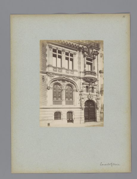 This silver gelatin print captures a Parisian house facade, attributed to Lampué et Cie. The photograph presents a symmetrical, geometric arrangement of architectural elements. The facade is structured around a central axis, emphasizing a balance between its left and right sides. Windows and balconies punctuate the building's surface, creating a play of light and shadow that articulates its form. The formal organization suggests an exploration into representation and spatial perception. The symmetry and detailing invite us to consider the photograph not just as a depiction of a building, but also as a study in form and composition. It encourages a reading of space that acknowledges the interplay between the surface and the underlying structure. The careful framing of the facade, with its clean lines and balanced proportions, reflects a commitment to both aesthetic order and intellectual inquiry. This approach challenges us to reconsider the relationship between the object and its representation.