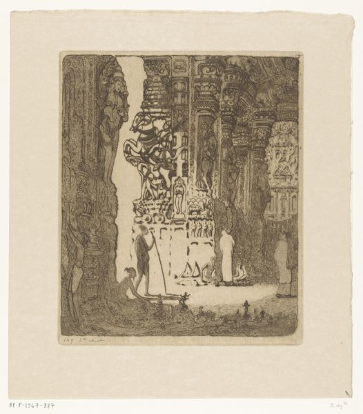 Jules de Bruycker made this etching of the Cathedral of Antwerp. It presents a view of the cathedral framed by the buildings of the city. De Bruycker made this print in Belgium, most likely in the early 20th century. Antwerp was known for its religious architecture as well as its thriving port and the print combines both of these elements. The monumental cathedral looms over the buildings in the foreground, dwarfing them, an effect exaggerated by the low viewpoint. The cathedral’s architecture speaks to the power of the church but the print also draws our attention to the buildings at street level, emphasizing the way religious institutions are embedded in the life of the city and are part of the everyday lives of ordinary people. To understand the print fully, we might want to look at the urban history of Antwerp, as well as the changing relationship between religion and the state in Belgium. This artwork reveals that the meaning of art is contingent on social and institutional context.