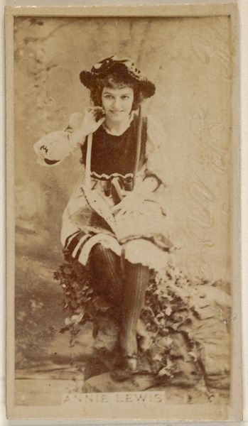 Editor: So, this is "Card 721, Miss Randall" from the Actors and Actresses series, dating from the late 1880s. It was made by Allen & Ginter for Virginia Brights Cigarettes. The photograph has a faded, dreamy quality to it, almost like looking at a memory. What catches your eye when you see it? Curator: That’s beautifully put! For me, it’s the almost playful dissonance between the rigid formality of the portrait and the sheer disposability of its original context – a cigarette card. Imagine someone puffing away, collecting these miniature glimpses into a world of theatre and celebrity. There’s a sense of aspiration, wouldn't you say? Editor: Aspiration, definitely. Like holding a little piece of fame in your hand. It’s interesting how something mass-produced could carry that kind of weight. How do you think Miss Randall would have felt about being on a cigarette card? Curator: Oh, that's the million-dollar question, isn't it? Perhaps a little flattered, certainly used for commerce, but perhaps ultimately immortalized, in a strange, nicotine-tinged way. Don’t you find a kind of poetic irony there? To be preserved, not in some grand gallery initially, but in someone’s collection alongside, maybe, botanical prints or butterflies. What a wild collision of contexts. Editor: Absolutely. It completely changes the way you look at both the portrait and the cigarette card itself. Curator: Precisely. It whispers about fame, consumerism, and the transient nature of beauty all wrapped up in one sepia-toned rectangle. That’s the art of collecting for you, isn't it? Unexpected resonances emerging from the most unexpected places.