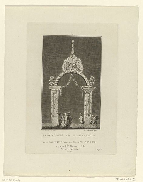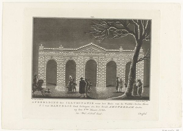 Jan Lucas van der Beek created this print in 1788, depicting the illuminated home of H.W. Cramer in Amsterdam. The image is striking because it captures a moment of public celebration and civic pride through the ephemeral art of illumination. During the late 18th century, Amsterdam was a city of contrasts, experiencing both economic prosperity and growing social tensions. This image creates meaning through its display of wealth and civic order, suggesting stability and celebration, but it could also be seen as a deliberate performance of power by the ruling elite. The print’s purpose was to commemorate a specific event, reflecting the Dutch Republic’s tradition of celebrating civic leaders and events through public displays. It offers a glimpse into the values and social structures of the time. To understand this artwork better, historians might explore city archives, guild records, and personal papers. The meaning of this print is contingent on its specific social and institutional context, highlighting the public role of art and the politics of imagery.