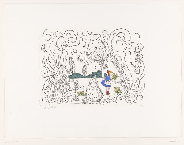 Curator: Erté’s "Number Three," held in the Tate Collections, immediately strikes me with its playful Art Deco elegance. The sinuous lines and the stylized figures feel both modern and timeless. Editor: It's undeniably eye-catching. It presents as decorative, but I can't ignore the implied narrative here, particularly around the female form being so abstracted and essentialized. How does this work, created by a man, fit into larger conversations about the representation of women in art and popular culture of that time? Curator: Erté’s images were widely disseminated through magazines like Harper’s Bazaar. They shaped perceptions of femininity, undeniably. Yet, his work also celebrated the power and artistry of costume and performance, allowing for a kind of self-fashioning that was, in its way, subversive. Editor: That's a valid point. The performative aspect offers a glimpse into the complexities of identity. I’m left considering how "Number Three" participates in the broader discourse of gender, representation, and the evolving role of women in the early 20th century. Curator: Ultimately, it shows us that even a seemingly simple image can hold multifaceted meanings. Editor: Absolutely. It invites us to consider art's role in shaping, and reflecting, societal attitudes.