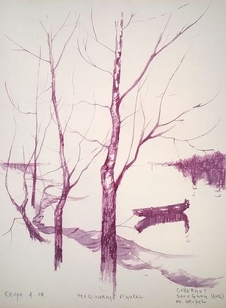 Curator: Standing before us is Alfred Freddy Krupa's "Wintertime," created in 2013, rendered in ink and watercolor. What catches your eye initially? Editor: It’s remarkably stark. The high-contrast grayscale palette creates a quiet, almost somber mood. The stark composition emphasizes verticality and clean negative space. Curator: It’s precisely that simplicity that's compelling. Trees, barren of leaves, are universal symbols of dormancy and resilience. How does Krupa harness these associations here, do you think? Editor: The trees take on a skeletal form in their graphic simplification, each trunk appearing almost as a set of abstract gestural lines rather than descriptive volume. He flattens forms into two dimensions, intensifying the image’s structural presence while still echoing familiar winter iconography. Curator: Considering the symbolism further, trees, stripped bare, might also reflect vulnerability, don’t you agree? An acceptance of inevitable cycles of nature, or perhaps a deeper understanding of the constant processes of creation and decay that characterize all forms of life. The negative space enhances that feeling, adding weight to their forms as though they are burdened by the snows of a never-ending season. Editor: The artist really leans into the limitations of ink and wash; that transparency, and even that inherent potential for blurring or bleeding allows a certain looseness into the pictorial space, generating an ambiance of atmospheric coldness. It almost perfectly evokes that chilly dampness of a gray winter's day. Curator: Yes, it seems the fluidity inherent in his approach enhances both the symbolic power of his choices while enriching their affective value within a broader framework. Perhaps such emotional and conceptual openness allows it to serve as a point of contemplation within its symbolic realm. Editor: It also invites us to examine its raw formal elements, each nuance rendered accessible through Krupa’s precise handling and aesthetic sensitivity within this intimate arrangement. Curator: True, in bringing awareness to the familiar imagery with this unique, evocative clarity and technique. I now find I will reconsider many things from my next view of this seasonal landscape. Editor: A piece where careful composition harmonizes, making for insightful viewing indeed.