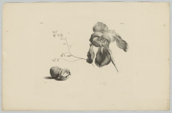 Curator: Here we have "Figs, pears, blackberries and pomegranate" dating from 1820 to 1833, a pencil drawing currently held in the Rijksmuseum. What's your first impression? Editor: Mmm, restrained. Delicate. A study in contrasts, actually. The sharp lines of the fruit against the airy almost ghostly background. It's both precise and dreamy. Curator: Let's consider the labor involved. Anton Weiss executed this work with precision, demanding skill in crafting the individual elements with meticulous accuracy using only graphite. How do we situate this in relation to artistic production at that time? Editor: Oh, there's such a stillness to it. Almost meditative. It feels very Northern Renaissance, that attention to detail... almost reverential in its portrayal of these natural forms. It makes you wonder what was on his mind as he rendered each curve and shadow. A bit of wonder, perhaps? Curator: Considering the period, these realistic renderings of natural elements reflected a rising interest in scientific observation, influencing approaches across visual arts and other contemporary research activities. These works blur high art and craft boundaries through the intense engagement in rendering familiar subjects like fruit to near photo-realistic degree. Editor: It's interesting you mention observation. The lighting is remarkable. Almost dramatic even though the scene is quite humble: a simple collection of fruit. It transforms everyday items into something monumental. Curator: The focus is entirely on the depiction of the items, without much stylistic interference; there are no tricks of the brush, so to speak. We observe very minute gradations in tone and details. The materiality of the paper itself and Weiss’ masterful graphite use speak for themselves. Editor: Right! This reminds me how art invites us to pause, look closely, and appreciate the transient beauty in even the simplest aspects of life— like these common fruits. Curator: Precisely. Appreciating not just the 'what' but also the 'how' directs our observation. And so, we end our brief materialist-infused reflection. Editor: Thanks! Hopefully inspiring a thoughtful gaze over the luscious beauty of fruit and graphite.