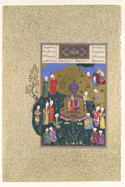 "The Feast of Sada" was made for the Shahnama of Shah Tahmasp, likely in the 16th century, using ink, colors, and gold on paper. The precious materials indicate this was a commission for someone of high status. Look closely at the vibrant pigments – lapis lazuli for the blues, vermillion for the reds. These would have been painstakingly ground by hand, mixed with binders, and applied in delicate layers. The gold leaf, too, would have required expert handling. The artist had to apply their skills within the established tradition of Persian miniature painting. The meticulous detail in the robes and faces speaks to the many hours of labor involved. This wasn't just a painting; it was a demonstration of wealth and refinement, a symbol of cultural power achieved through considerable expertise. The value of this painting lies not only in its aesthetic beauty, but also in the story it tells about the social and cultural context of its creation. It prompts us to reflect on the relationship between art, labor, and power throughout history.