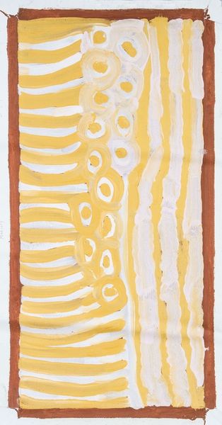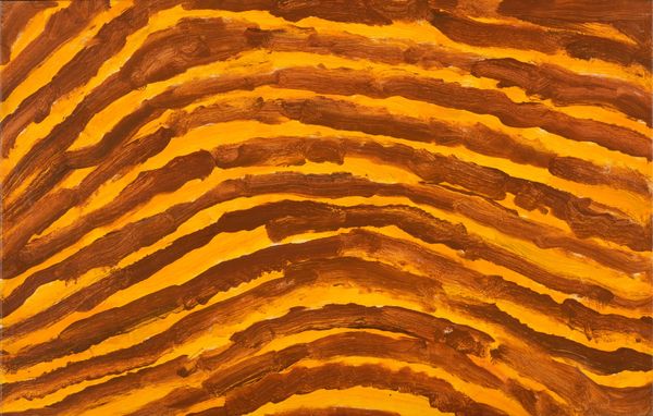Makinti Napanangka rendered Lupulnga using acrylic on canvas, presenting a field of horizontal lines that undulate across the surface. These lines, alternating between warm yellows and muted whites, are visual echoes of the landscape, mapping the sacred Lupulnga site in the Gibson Desert. Consider the ancient, cyclical power of abstract lines to symbolize a specific place; these lines are not mere representations, but carry the weight of ancestral stories and cultural memory. Think of similar lines in ancient maps, or even in the contours of ancient labyrinths, which represent the passage through life's journey. These are not static representations but potent symbols imbued with layers of psychological and cultural significance. The repetitive nature of the lines creates a rhythmic pattern that, on a subconscious level, evokes the cyclical nature of life, death, and rebirth, engaging viewers in a dialogue that transcends time and space. In this way, the symbol resurfaces, evolved, and taken on new meanings in different historical contexts.