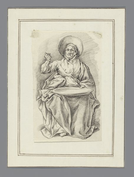 Simon Guillain the Younger created this engraving of Saint Francis. Notice how the circular composition directs our gaze towards the contemplative figure of St. Francis. He is presented seated on a cloud, hands raised in supplication, framed by a delicate halo. The fine, precise lines define not only the saint's features and drapery but also the ethereal quality of the clouds beneath him. There's a visual tension here: the solidity of the figure against the fleeting, almost dissolving form of the clouds. This interplay destabilizes our conventional understanding of space. Guillain employs line and form to create a semiotic landscape where the saint's gesture and setting become signs pointing towards devotion and transcendence. This work invites continuous re-evaluation, urging us to examine the formal means through which spiritual concepts are visualized and understood.