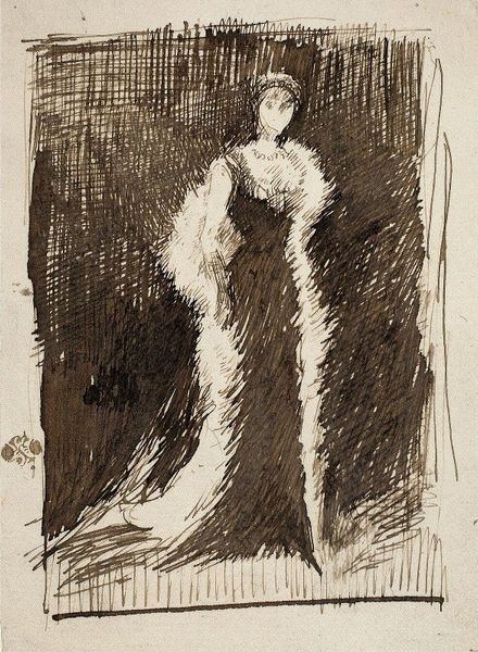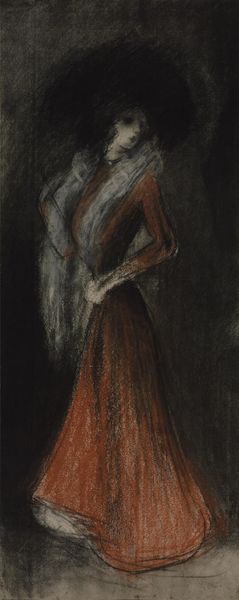 Editor: Here we have Renoir's "Ellen Andree" from 1879, a captivating portrait rendered with oil paint and pastel. I'm struck by its delicate, almost dreamlike quality. The blending of colours feels very deliberate. What aspects of this work stand out to you? Curator: Certainly. The semiotic relationships constructed here are fascinating. Consider the interplay of light and shadow; the formal elements serve to generate an emotional response. Note how Renoir has manipulated colour to imply form rather than explicitly define it. What does this haziness communicate? Editor: Perhaps a sense of ethereal beauty or a fleeting moment in time? It does soften the subject's features, making her less defined, more of a feeling than a concrete form. Curator: Precisely. This formal choice invites closer inspection and prompts consideration of Renoir’s technique. Reflect on how he disrupts linear form in favour of tonal gradation. Look at the direction of the brushstrokes, too, moving around the composition as a whole to form implied visual rhythms. Editor: I see that now. It is quite interesting how the technique gives it a certain aesthetic…almost unfinished look, while being very clearly intentional at the same time. How does it inform meaning? Curator: Indeed. The fragmented and seemingly 'unfinished' quality prompts the viewer to participate in the image's completion. The open composition also implies spatial relationships beyond the frame itself, a deliberate strategy which lends this artwork an experiential, durational quality. In viewing this artwork we might use structuralist reading techniques to arrive at deeper interpretation. What does the piece have to ‘say’ about womanhood or perception itself? Editor: Fascinating. I had only noticed the surface, so to speak. I see how analyzing these elements, their forms, creates the image and our understanding of it. Thank you! Curator: A close reading reveals this and it enhances the art experience, yes.