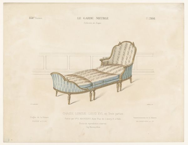 Léon Laroche made this print of a "Chaise Longue Louis XVI." The image comes from a fascinating source - "Le Garde-Meuble," which translates to "The Furniture Repository." This publication documented furniture designs in France. The inclusion of “Louis XVI” in the title tells us this is from the late 18th century. "Le Garde-Meuble" provides a window into the world of elite consumption and design during the reign of Louis XVI. The original "Garde-Meuble" was the Royal storehouse, an institution that controlled the supply of luxury goods to the court. Publications like this helped disseminate those designs to a wider audience. So, while ostensibly documenting design, the print also speaks to social hierarchies. We can look to period inventories, trade records, and design treatises to reconstruct the world of taste and consumption that gave rise to this chaise lounge. Art history thrives when we examine it in its institutional context.