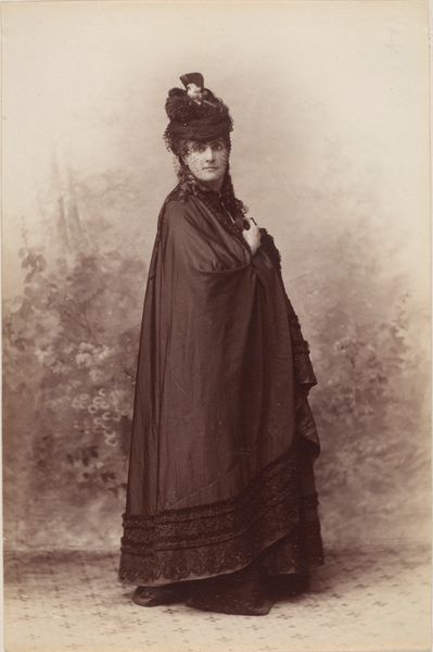 This photograph, "Arrivo," by Pierre-Louis Pierson, presents us with an intriguing study in texture and form. The sepia tones lend an air of antiquity, focusing our attention on the materiality of the subject’s clothing. The subject's fur hat and ornate trim of her cape stand in contrast to the plain background. Pierson masterfully uses the interplay of light and shadow to define the contours and textures of the cape, rendering the silhouette with a sculptural quality. The subject's posture and the arrangement of the cape create a dynamic tension, suggesting movement frozen in time. Through the semiotic lens, the textures and draping of the fabric signal not just fashion but also status and identity. By manipulating the textures and lighting, Pierson invites us to consider how clothing functions as a language, capable of expressing unspoken narratives.