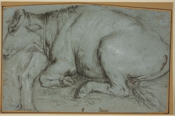 Curator: This ink drawing on paper is titled "Lioness Devouring a Rabbit". It comes to us from the hand of Eugène Delacroix. Editor: Well, right off the bat, there's something almost tender about it, if that makes any sense. A brutal tenderness. The lioness isn’t just tearing into the rabbit, she's embracing it, almost cradling it. Curator: That tenderness is interesting, given that lions have traditionally represented strength and royalty. Yet here, that power is shown in relation to vulnerability. We see the archetypal power dynamic, played out. The act of devouring is instinctual, primal... it's life and death intertwined. Editor: Exactly. There's this whole chain of associations – power, motherhood, survival – all wrapped up in one, quick sketch. You can almost smell the wildness coming off it. What about the romanticism people often ascribe to it? Does it relate to that? Curator: I believe so. Delacroix was definitely at the vanguard of the Romantic movement, with its celebration of raw emotion and drama. Often, we can look to symbols for echoes of historical events and belief. Perhaps, this work attempts to wrestle with natural themes through emotion, like life. Death. Editor: Yes! And the muted colors contribute to the dreamlike feel, even with the brutality. The focus isn’t just on the action, but also on the inner experience of the lioness. There’s almost a sigh within this drawing. Curator: I can see that, given the Romantic style’s interest in feeling over realism. The visual weight feels as if the lion is succumbing to an emotional or instinctual wave, her body nearly inert. She is both powerful and a victim of necessity. Editor: It is that dichotomy between her royal posture versus the base action that makes this so poignant. There is a story being told through the contrast and the fact it is Delacroix, no less, suggests a more deliberate reading of primal existence. Curator: A moment to remind ourselves, even at the apex of our own societal power, nature and raw existence continues to drive existence. Well, thank you for this exciting analysis. Editor: My pleasure. Nature will do what nature does.