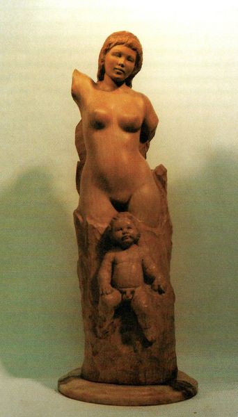 In the 1920s, the new critical approach of writers such as Roger Fry and R.H. Wilenski released a number of British sculptors from a slavish veneration of Greek art. They began to question classical standards of beauty by looking afresh at the art of non-European cultures. Eric Gill's interest in the art of non-European cultures developed before the 1920s, largely through the influence of the philosopher and theologian Ananda Coomaraswamy. In 1908 Coomaraswamy's lecture on Indian Art made a deep impression on Gill. In this sculpture Gill explores the relationship between the sacred and the profane, drawing in particular on traditional Indian sculpture. Gallery label, September 2004