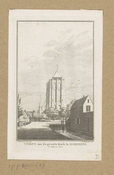 Curator: The Bunker Hill Monument, Charlestown, captured here by Rudolph Ruzicka in 1915, has such a solemn feel. It’s almost like a stage set. Editor: It certainly is imposing. I find the monument's stark verticality, framed by those delicate trees, quite striking, almost like a phallic assertion of dominance. Curator: Dominance, really? I see it more as a quiet, contemplative space. There are people, but they are rendered as miniature figures, walking the square. The monument presides over them like a silent sentinel. Editor: And what is it a sentinel of? An uncritical patriotism, perhaps? Or a reminder of the uneven power dynamics inherent in revolutionary narratives? After all, who gets to be a hero and who is conveniently forgotten? Curator: I think Ruzicka, with his subtle shades of light and shadow, wanted us to contemplate these stories, not to take them at face value. Editor: I concur, this artwork invites reflection on the many layers of historical interpretation, questioning whose voices are amplified and whose are silenced. Curator: Ultimately, art like this helps us see monuments not just as static symbols, but as evolving dialogues.