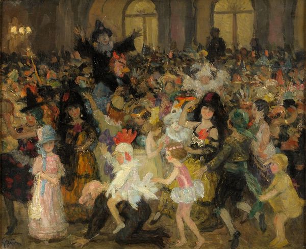Umberto Boccioni made this painting, Riot in the Galleria, with oil on canvas. It looks like the canvas is absolutely vibrating! He's using a pointillist technique, but these aren't the calm dots of Seurat. Here, they build into an almost frantic energy that really conveys the feeling of a riot. Check out how he uses blues and purples in the shadows of the figures, and the way the whole scene is lit by a bright, almost feverish yellow light emanating from the ‘CAFFE’. The texture is thick, giving the painting a tactile quality that draws you right into the chaos. There is one dancer right in the middle of the painting who has a brilliant red dress. Boccioni was part of the Futurist movement, and this painting is a great example of their obsession with capturing movement, speed, and the dynamism of modern life. It feels like he’s showing us not just a riot, but the energy of a new century being born. It reminds me a little of some of the Italian Divisionists like Pellizza da Volpedo who also played with the way spots of colour can make a new kind of experience.