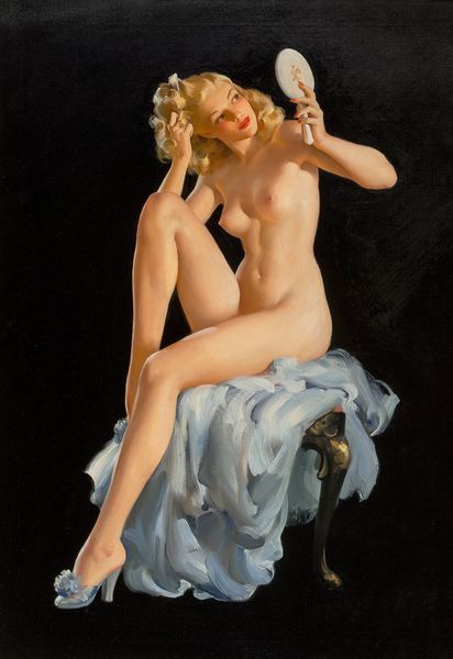 Here is Zoe Mozert’s “Woman on Diving Board,” a work that encapsulates the idealized feminine form that was in demand for commercial illustration throughout the mid-20th century. As a female artist in a male dominated field, Mozert’s perspective offers a nuanced glimpse into the aesthetics of the time. Her figures often present a blend of allure and accessibility, reflecting the cultural tensions around female sexuality and representation. In this piece, the woman’s coy smile and relaxed pose exude a self-assuredness that counters the objectification typically found in pin-up art. Mozert was one of the few women to achieve prominence in the field of pin-up illustration, and she navigated the industry with a clear understanding of her own agency. Her images present viewers with an idealized vision of the female form, while subtly critiquing the conventional ways women are seen and portrayed. She offers us a unique perspective on the complex interplay between art, gender, and social expectations.
