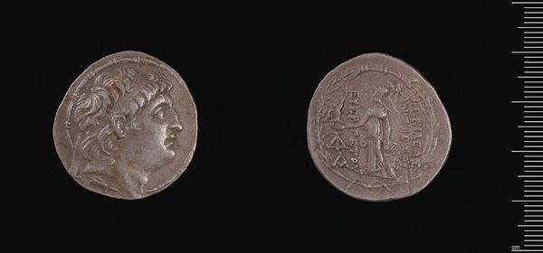 Editor: Here we have a Posthumous Tetradrachm of Lysimachos from Byzantion. It's a striking coin, and I'm fascinated by the crispness of the profile. What compositional elements stand out to you? Curator: Observe how the dense, almost baroque rendering of the hair contrasts with the clean lines of the profile. Note also the balance between the figural representation and the inscription on the reverse. Does this contrast strike you as intentional, perhaps symbolic? Editor: I hadn't considered that. It does seem to emphasize the power of the portrait. I learned a lot. Thank you. Curator: Indeed. By focusing on the formal elements, we can begin to understand how the coin functions as a potent visual statement.