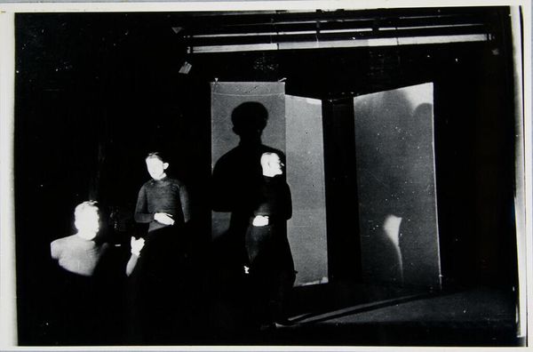 Curator: Standing before us is Harry Callahan’s gelatin silver print, "New York," captured in 1962. It’s a quintessential example of his street photography. Editor: My initial impression is one of high contrast. Stark blacks against brilliant whites carve out these angular shapes that seem almost aggressive, even a bit ominous. Curator: Absolutely. The high contrast reinforces a certain starkness, echoing a perceived urban alienation prevalent at the time. See how Callahan positions the figures, partially obscured and dwarfed by their surroundings. It resonates with the psychological landscape of the individual amidst the overwhelming city. The deep shadows even call to mind film noir aesthetics. Editor: The lines themselves are almost architectural drawings, yet so graphic. Callahan almost appears to reduce human existence to mere structural elements within a manufactured grid. There’s this tension between order and fragmentation. He also clearly leverages repetition through the play of light and shadow. The parallel lines of light could also speak to being behind bars in an institution... Curator: I see the shadow play also as an almost constant motif of interruption, acting as a mask that denies complete legibility or transparency to its subject. But perhaps what we are seeing is what has been hidden from history. The female figures are almost obscured; and as such the work might reflect a patriarchal structure where female identity or visibility is actively suppressed. Editor: Hmm. Interesting interpretation, I still come back to those shapes: trapezoids, squares. How Callahan uses shape, and essentially, dark/light. Curator: So it is not just documentation; the gelatin silver print invites a contemplation on the veiled existence of people within an indifferent urban construct. Editor: Callahan seems very aware of visual language; of shape, scale, and pattern. Ultimately, for me it's an abstract play in black and white and what it communicates tonally. Curator: I concur. Thank you for bringing the purely photographic lens to our reading of Callahan's iconic "New York," so that our listeners might engage with the photograph’s layers.