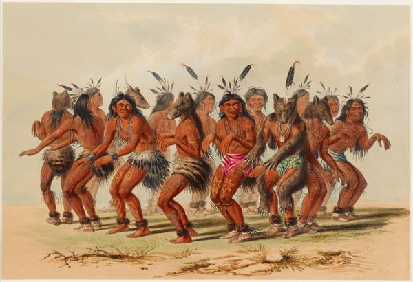 Editor: This oil painting is entitled "Lionhunt," and it was created in 1947 by Werner Peiner. It has a fascinating narrative quality, like a scene plucked from a historical account. I’m curious, what historical context is essential to interpreting this painting? Curator: Well, Peiner painted this shortly after World War II. Considering his involvement with Nazi propaganda during the war, this seemingly straightforward genre scene becomes loaded. How might depicting an "exotic" lion hunt, in a rather idealized and romanticized manner, serve as a form of deflection, perhaps even rehabilitation, for an artist with a compromised past? Editor: That’s a powerful perspective! So, by focusing on a distant, seemingly apolitical subject, Peiner might be attempting to distance himself from the immediate concerns and judgments of postwar Germany? Curator: Precisely. Consider the figures themselves. They're rendered with a stylized, almost primitivist aesthetic, reminiscent of earlier colonial depictions of African peoples. What message does that aesthetic choice convey to its contemporary European audience? Editor: Perhaps it's about reinforcing a sense of Western superiority, portraying non-Western cultures as simpler or less developed. It feels almost like a nostalgic yearning for a pre-war colonial order. Curator: Exactly! And that ties into the politics of imagery – the way power structures influence representation. How do you think exhibiting works like this contributed to the postwar cultural landscape and its evolving sense of identity? Editor: It's unsettling to think about how art can perpetuate certain views. I never would have thought of those socio-political questions related to postwar cultural representation and politics by just viewing this work on its face. Curator: That is why context matters! It forces us to critically examine the motivations and effects behind seemingly innocuous imagery, enriching our own critical analyses of visual art.