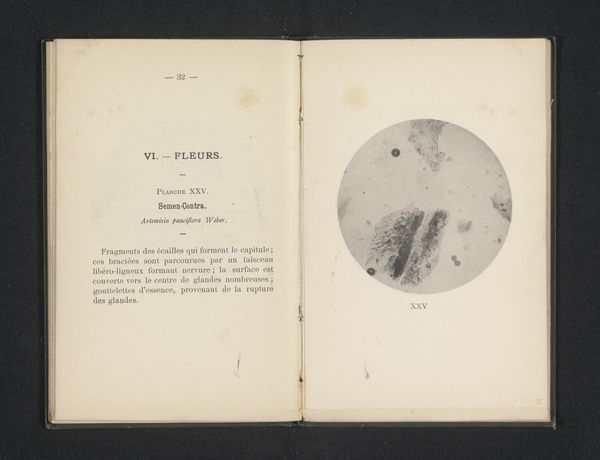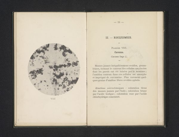 Here is your audio guide script: This is a page from a book, featuring a microscopic view of Ceylon cinnamon, by Léon Herlant. The circular image, filled with intricate details, echoes the ancient symbol of the Ouroboros – the snake eating its own tail. This symbol, found in Egyptian iconography and alchemical texts, represents the cyclical nature of time, the eternal return, and the unity of beginnings and ends. The cinnamon, broken down into microscopic components, mirrors this concept. It reminds us that what appears simple and whole is, in reality, made up of myriad complex parts. Consider how the Ouroboros, laden with psychological weight, resurfaces as a modern scientific visualization, linking the ancient quest for immortality with our contemporary drive for knowledge. The cyclical patterns within the cinnamon, magnified under the lens, invite a profound sense of wonder and a connection to the rhythms of the cosmos.