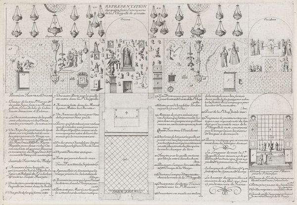 Editor: This work is called "Brikker til et skakspil", or "Pieces for a Chess Game" in English. It was created between 1743 and 1751 by Marcus Tuscher, using pen and ink. It looks like a technical drawing of chess pieces, almost architectural in its precision. What strikes you about the composition of this work? Curator: Note first the grid-like structure. Observe how Tuscher uses the grid not merely as a means of organization, but as a way to highlight the geometric properties of each piece. Each square contains a single form and the entire plane functions almost like a mathematical equation. Semiotically, the pen work seems highly controlled. Notice, too, how the diagrammatic rendering seems devoid of gestural markings or any reference to external aesthetics. It invites us to focus on the relationships of line, form, and textual annotation to denote rank and material. Editor: I hadn't considered how mathematical it appears! Is this attention to geometry a feature of Baroque art? Curator: While Baroque art is often associated with dynamism, ornamentation, and intense emotion, this drawing reflects the era’s interest in order and scientific understanding. This graphic structure of the chess pieces also plays into the tradition of philosophical inquiry. Editor: I can definitely see the philosophical side now! I was only focusing on the subject, chess. Thank you for opening my eyes to the way line and geometry communicate meaning. Curator: Precisely. Recognizing this dimension of geometry reveals other dimensions for aesthetic contemplation and potential analysis of content.