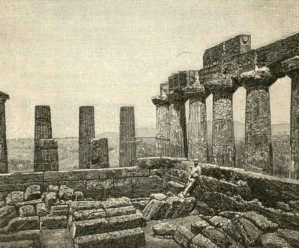 Curator: Looking at this work by Themistocles von Eckenbrecher from 1890, we see "The Parthenon from the East." The medium is listed as drawing. Editor: Ruins. Immediate sense of, not devastation, but… stately decay? Like an aging queen remembering her prime. The precise linework highlighting all the missing bits makes you feel the absence of time itself. Curator: Precisely. Note how Eckenbrecher uses linear perspective and shading to create depth and emphasize the architectural structure, the skeleton, if you will, against the somewhat blurred, ambiguous backdrop. The composition invites a formal reading, with the Parthenon placed to draw the eye toward a vanishing point just over the mountain. The strategic placement underscores its enduring presence amid what might otherwise be merely… rubble. Editor: Rubble with a purpose! I find the ruins oddly uplifting, like a phoenix getting ready for Act Two. Each crumbled bit has its story, a forgotten prayer, a whispered secret. Imagine sketching this scene a hundred and thirty years ago, trying to lasso something so monumentally un-lassooable. Curator: Indeed. There's a dialogue between detail and scale, particularly within the classical aesthetic – a tension made ever starker with its fragmentation over time. Von Eckenbrecher captured a period of reimagining the ancient world through romantic yet accurate renderings of extant remains, aligning with art movements valuing classical and historical references, right before Modernism’s rise. Editor: It is moving to witness our attempt as human beings to capture our ancestors attempt at divinity; you can feel him struggling in such a profound way in this single drawing. This old piece just really has a heartbeat! Curator: Certainly, an emotional core encased within strict formalism; now as we conclude, the study of Eckenbrecher's depiction provides not only insight into an archeological marvel but into evolving aesthetic sensibilities that viewed and interacted with that marvel through their contemporary moment in history. Editor: And you realize these stones probably carry the echo of laughter of artists across centuries; and this one, Themistocles, simply immortalized what he thought they whispered. I can't hear a word but still can almost hear them chatting in my head!