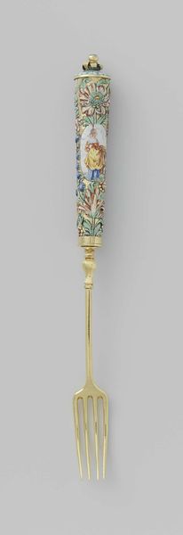 Curator: Welcome. Today, we’re looking at a "Firescreen" dating from the mid-19th century. The piece is attributed to England and resides here at the Minneapolis Institute of Art. Editor: My initial impression is that it's incredibly ornamental. The dark backdrop, the vibrant still life, and its almost cartoonish form combine to deliver a strong decorative statement. Curator: Indeed. Consider that the function of a fire screen was largely social—to protect delicate complexions from the heat of the fire while conversations unfolded around the hearth. Editor: So, beauty as a social tool. I notice the way the painted fruit spills outwards towards us. And then there's the high-contrast color palette. Can you speak to the tempera medium chosen here? Curator: Absolutely. Tempera, being a fast-drying medium made with pigment and a binder, afforded the artist control and precision ideal for detailed decorative work intended for display. Furthermore, the materiality— the sheen and smoothness of tempera on the screen—speaks to status and class. This isn't just about blocking heat, it's about demonstrating refinement. Editor: It's a really unique object when you consider the context of fireside conversations; the artwork interjects into a moment intended to offer social and performative advantage. The decorative scheme is more about announcing yourself. Curator: Precisely. And how telling that the visual vocabulary consists of bountiful fruit—suggesting abundance, harvest, and even empire. Editor: Considering it within England’s decorative arts, its presence offers us a lot to reflect upon: consumerism, social status, identity performance, the use of high and low craft, labor… Curator: Thank you, that illuminates it perfectly. One truly begins to understand this firescreen as not merely a pretty object but as a carefully wrought piece of material culture. Editor: My pleasure. It strikes me that objects like these carry meaning far beyond their surface—resonating still today.