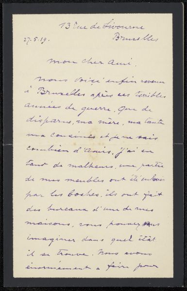 This is a letter to Lodewijk van Deyssel, handwritten by Jan Veth in the late 19th or early 20th century. The material, humble as it is—paper and ink—speaks volumes. In this era of burgeoning print culture, handwriting signaled intimacy and personal connection. Look closely, and you can almost feel the pressure of the nib on the page, the rhythm of Veth’s thoughts flowing directly from mind to hand. The smudges and corrections aren't imperfections, but evidence of a mind at work, grappling with language and ideas. The act of writing itself was a skilled craft, demanding penmanship and rhetorical flair. Veth was a man of letters, both literally and figuratively. The letter becomes a relic of a bygone era, reminding us of the slower pace of communication, and the value placed on personal correspondence. It stands in contrast to our digital age of mass production and instant messaging, inviting us to reflect on the human touch in an increasingly automated world.