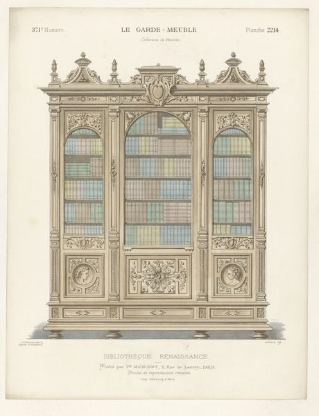 This print from an unknown artist depicts two bookcases and was likely made in France in the 19th century. As an advertisement for a furniture maker, this image tells us a lot about the rising middle class. The bookcases are objects of refined taste, demonstrating wealth and an appreciation of cultural values. The ornate details such as the carved figures, and foliage, also reflect the French style of the time. They also imply the social status of the book owner. But the image also raises questions about the production and distribution of luxury goods in this period. Who made these bookcases, and under what conditions? How were they marketed to consumers? Understanding the answers to these questions requires close examination of the social and economic history of 19th-century France. Trade journals, census records, and business archives will provide more detail.