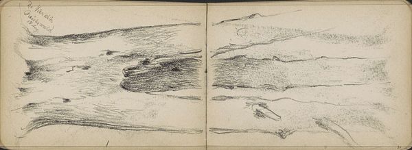 Curator: Looking at this sketchbook page, it's a bit like rifling through someone's visual thoughts, isn't it? Editor: Indeed. There’s a certain immediacy here, an unedited quality that really speaks. Curator: We're looking at "Studieblad met zeilschepen en een hek bij een weiland," a drawing done around 1876-1877 by Willem Cornelis Rip. It's primarily pencil on paper, but you can also see hints of watercolor. What's your first impression? Editor: Stark and serene, actually. Even in these unfinished sketches, there's a strong sense of place. I'm struck by how Rip captures the quiet, rural feel of the landscape while hinting at the larger forces—the sea and trade—that shaped the Dutch economy during this period. Curator: Absolutely. It's impressionistic, catching fleeting moments and sensations. But I feel a real tension too—the raw energy of the pencil marks juxtaposed with the tranquility of the scenes. He clearly wanted to show this moment. Look at the fence in the foreground and the distant boats. It really emphasizes the idea of boundaries and horizons. Editor: And who, historically, were these boundaries intended for, and for whose benefit? The Dutch Golden Age built itself through its domination of oceanic trade, achieved through systemic forms of subjugation. In light of that legacy, the ‘quiet, rural feel’ you describe feels very loaded. Curator: I get that completely! Seeing art as entangled with historical context changes the way we understand it. What do you think about the ships in the distance on the right panel, with their faint masts almost disappearing into the aged, discolored areas of the paper? There’s something ghostlike, melancholic about them. Editor: It's haunting. It forces us to confront the unseen histories carried across those waters – the violent displacements and exploitation. It reframes the picturesque landscape not just as a site of peaceful scenery, but of power, exclusion, and the legacies of colonial capitalism. Curator: A potent reminder that even sketches like these can be anything but simple, and are worthy of conversation. I keep getting pulled back to that initial tranquility… I love the way he managed to put so much of life in one single drawing. Editor: Well, as we've shown, these deceptively 'simple' compositions prompt us to contemplate the visible, and perhaps more importantly, the less visible dynamics that frame our world. A world inherited from previous generations.