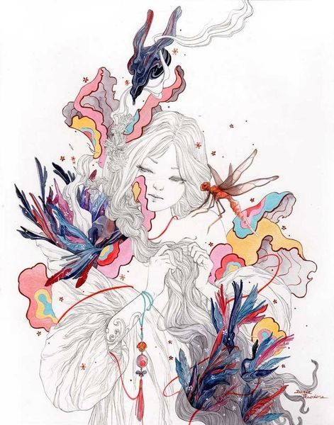 Sandra Chevrier, born in 1983, made "La Cage et le battement de Coeur" with what looks like watercolor and collage. The effect is like watching a memory dissolve. Chevrier’s layered approach, mixing delicate washes of color with comic book fragments, feels very contemporary but also timeless, like art is just the latest layer in a long archeological dig. The watery marks around the figure’s face suggest a face struggling to emerge. Take a look at the way a comic book panel bursts through the surface of the skin. It's like the artist is asking: What is the relationship between our inner selves and the masks we wear? Are we all just superheroes in disguise? I'm reminded of Sigmar Polke and his use of printed fabrics. Chevrier uses images in a similar way, disrupting the surface and challenging our assumptions. Art, after all, is an open conversation about who we are and how we see.
