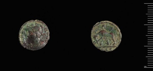 Curator: Here we have a Tetradrachm of Alexandria, minted during the reign of Diocletian. Editor: It looks so incredibly worn, almost like it's been smoothed by time itself; the details are barely perceptible. Curator: Exactly. The corrosion obscures the relief, but one can still discern the emperor’s profile on one side. Coins like these were more than mere currency. Editor: Ah, so it's less about economics and more about imperial projection? Diocletian using his own image to imprint power on the cultural psyche? Curator: Precisely. And consider the eagle on the reverse, a symbol of Roman authority, repeated and reinforced through this medium. Editor: A powerful image, indeed. It speaks volumes about control and the weight of empire. Curator: Indeed; it all reinforces the stability Diocletian sought to project. Editor: Looking at it now, I see less a coin and more a worn symbol of endurance. Curator: A fitting sentiment to conclude.
