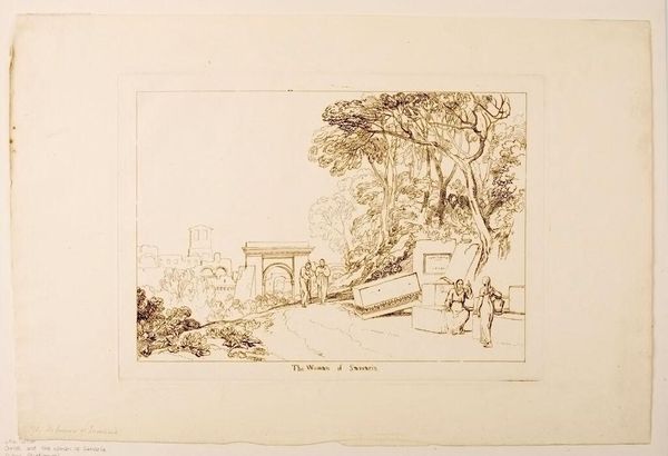 Editor: Here we have "Bridge and Cows" by Thomas Goff Lupton. The scene has a lovely, pastoral quality to it. What compositional elements stand out to you? Curator: The artist’s use of line is striking. Note how the fine, etched lines create texture and depth, particularly in the foliage and the reflections in the water. Consider the structural role of the bridge: how does it divide the space, and what effect does that have? Editor: It seems to separate foreground activity from a more serene background. I also see the figures near the cows, and how that area is full of texture. I hadn’t considered the bridge as a division of space, though. Curator: Yes, the eye is drawn to that space because the lines are more dense. The structural elements are there to further highlight the focal point. What have you learned? Editor: I see the value of the artist's marks and how they direct our gaze.