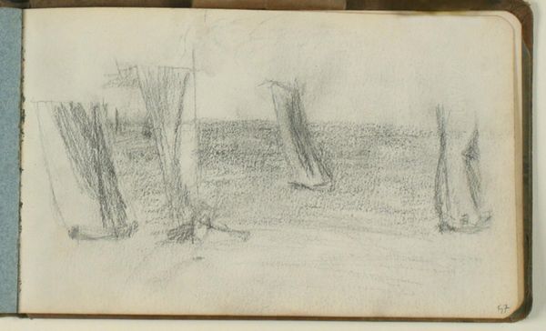 Louis Apol created this drawing of trees in the Dutch landscape with graphite and crayon on grey paper. The sketch offers a glimpse into the artistic process and the evolving relationship between art and the natural world in 19th-century Netherlands. Apol, known for his winter landscapes, often depicted serene and untouched scenes. But this sketch invites us to consider how such images might also reflect prevailing cultural attitudes towards nature. The directness of the sketch hints at a desire to capture nature’s essence, an impulse tied to the rise of landscape painting as a respected genre within the art academy. To understand the role of this drawing, we might explore exhibition records and critical responses to Apol’s work. In doing so, we can discover how artistic institutions shaped both the production and reception of landscape art in the Netherlands. Ultimately, this helps us understand the image’s complex interplay between artistic vision and broader social values.